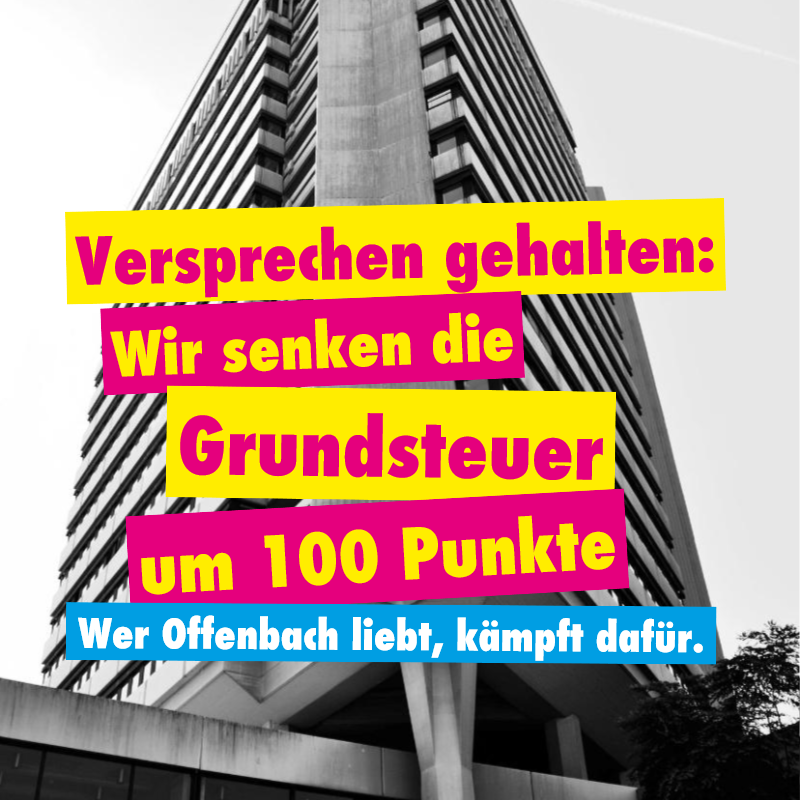 „Wir halten uns aber an unser Versprechen: Sobald es solide Spielräume gibt, die unabweisliche, projektierten Maßnahmen wie Schulbauten oder den Maindeich nicht behindern, müssen die Offenbacherinnen und Offenbacher wieder entlastet werden. Daher bedanken wir uns sehr herzlich bei den Bürgerinnen und Bürgern Offenbachs, die auch teils kritisch begleitend, die letzte Erhöhung mitgetragen haben. Uns war immer bewusst, dass dies für viele Offenbacher und Offenbacherinnen eine große Belastung bedeutet. Umso wichtiger ist es Wort zu halten und die Steuer in dem Maße zu senken, in dem es finanziell möglich ist. Nur gemeinsam gelingen solche Kraftanstrengungen und wir hoffen, dass die Corona-Krise Offenbach nicht zurückwirft“, schließen die Fraktionsvorsitzenden der Koalition, Roland Walter (CDU), Ursula Richter (Grüne), Dominik Schwagereit (FDP) und Dennis Lehmann (FW).